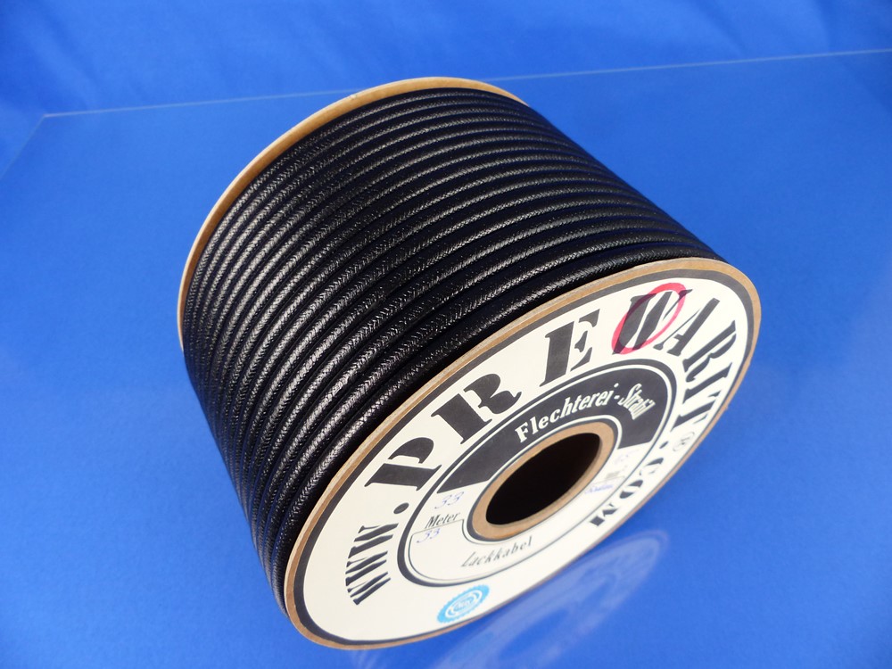 Modernes PVC Zündkabel mit Baumwolle umflochten und seidenglänzender, tiefschwarzer Beschichtung.